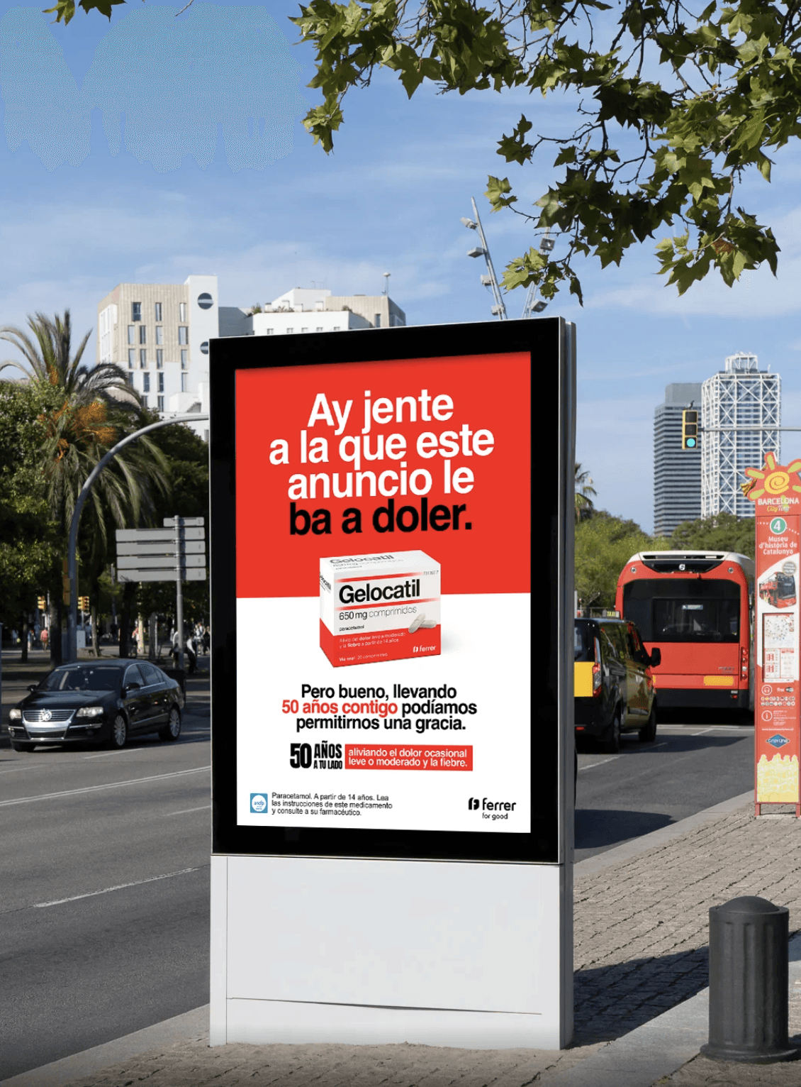 Gelocatil es un medicamento que alivia el dolor de cabeza que cumplía 50 años. La campaña se basa en un insight potente: las faltas de ortografía molestan tanto que pueden despertar un dolor figurado de cabeza. Empapelamos las calles con mensajes llenos de faltas ortográficas, con el objetivo de hacer un poco de daño… Y sacar alguna que otra sonrisa.